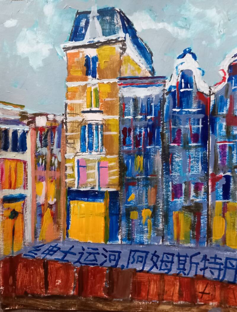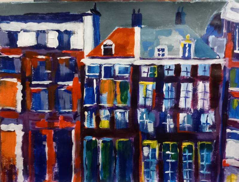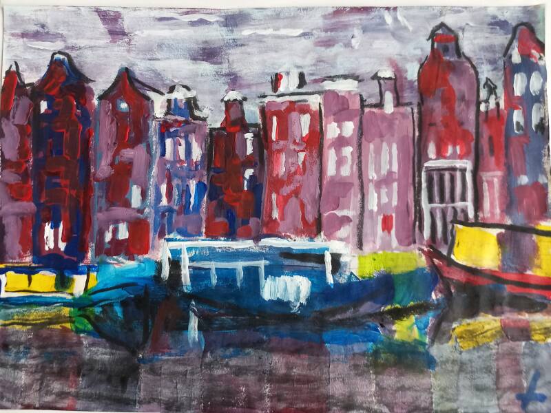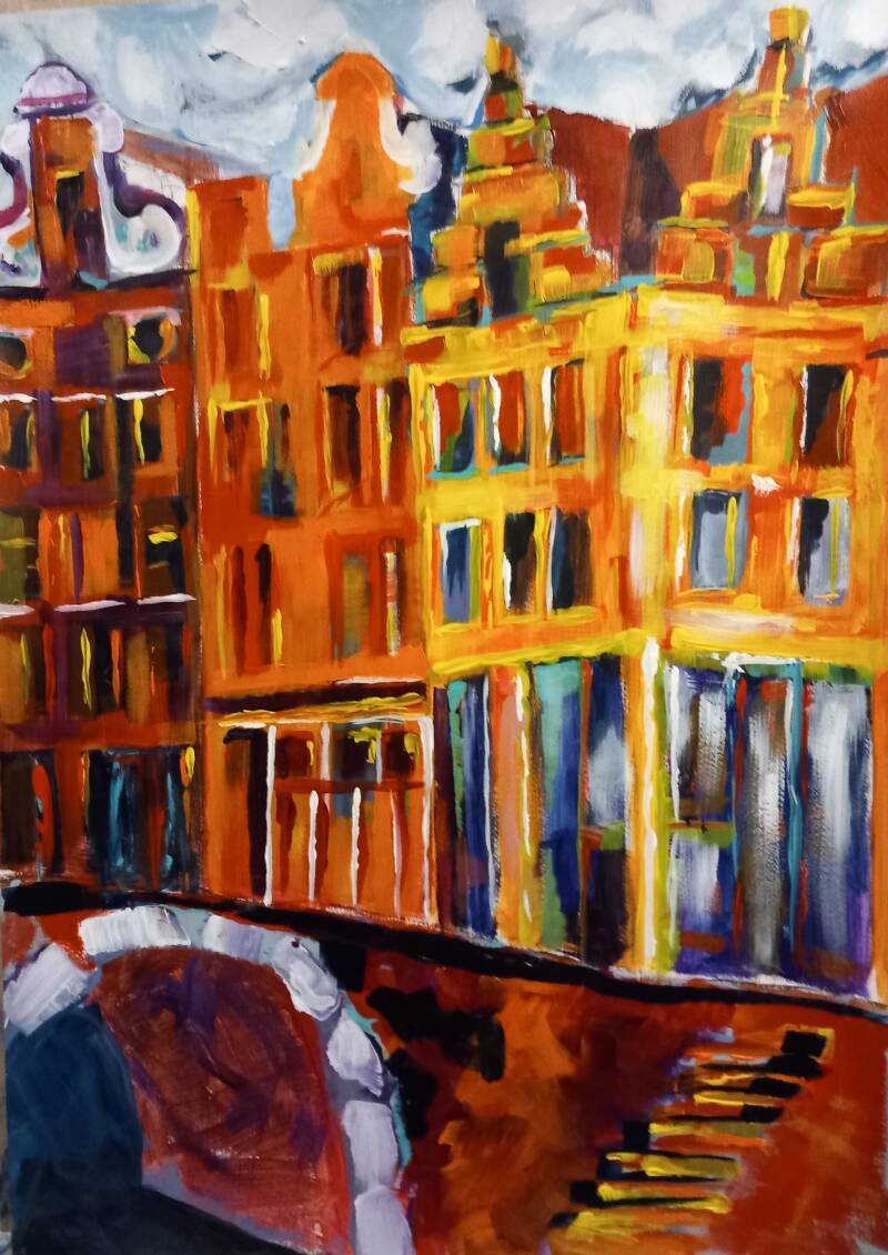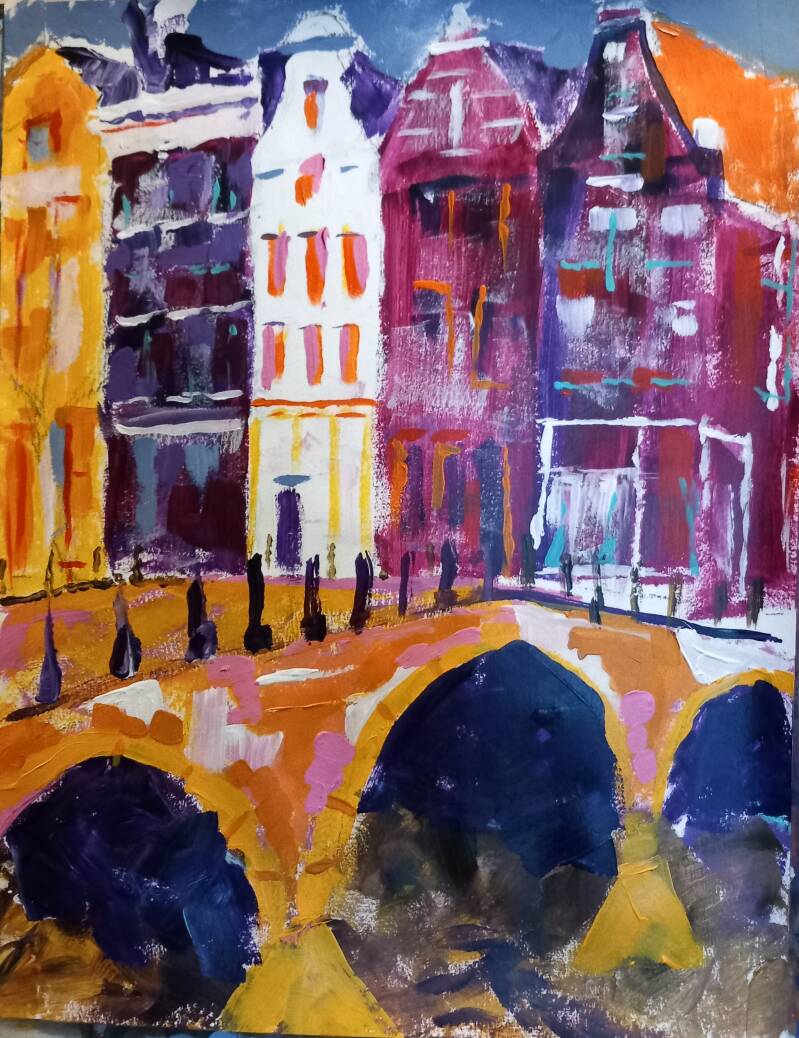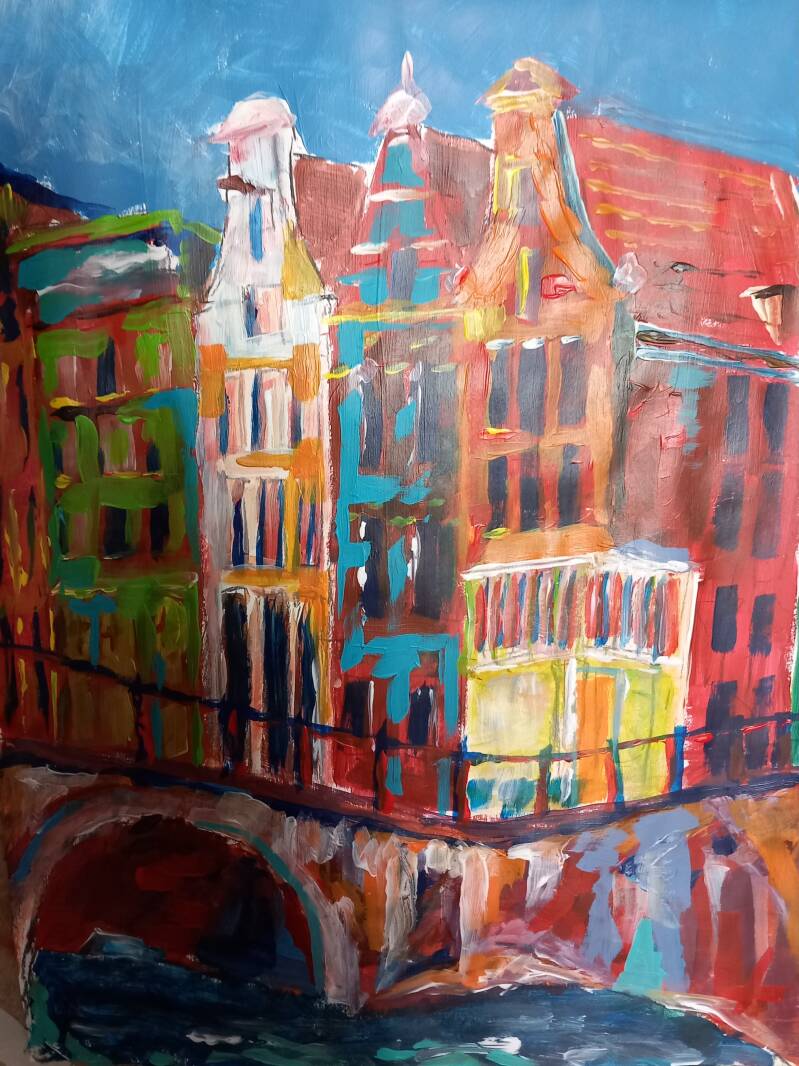 - Amsterdams V, in acrylverf, 40x50cm, prijs op aanvraag