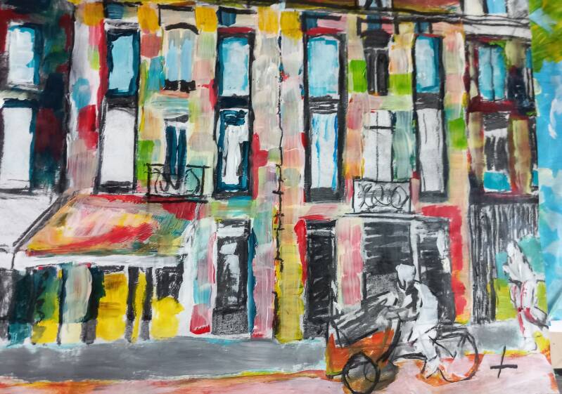 Van Baerlestraat, 2023, 65x50cm, mixed media, verkocht