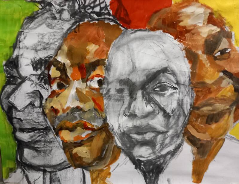 Zelfportret, 2023, 65x50cm, collage & acryl, prijs bij opvraag
