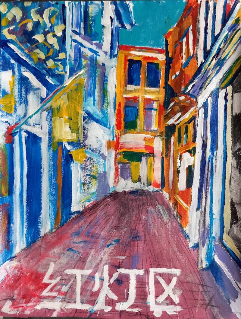 Lijnbaansgracht, 2022, 38x27cm, mixed media, prijs bij opvraag